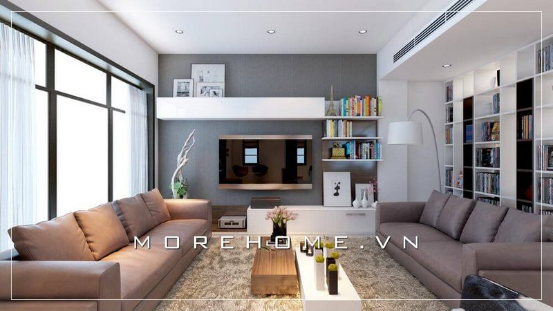 Sofa hiện đại là lựa chọn hoàn hảo cho không gian phòng khách chung cư nhỏ gọn với kiểu dáng văng đôi đơn giản, tiện lợi và vỏ bọc vải màu nâu sang trọng, mang lại cảm giác ấm cúng mà thoải mái, tiện nghi.