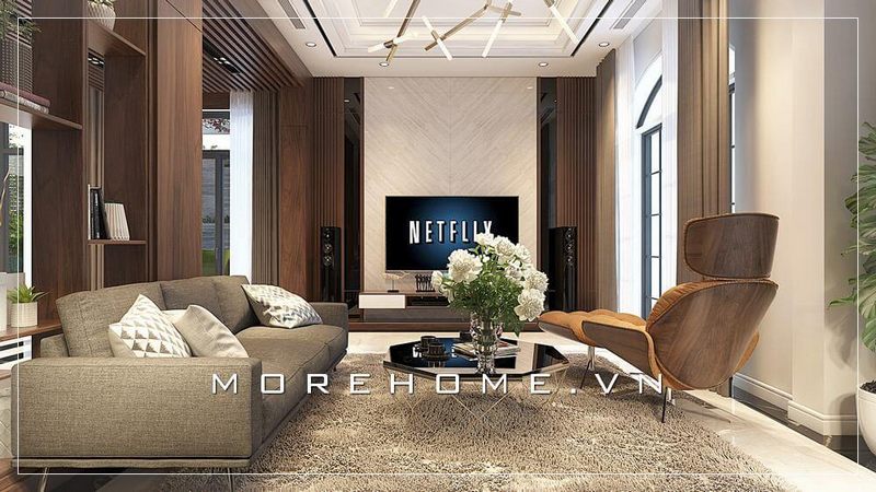 Bộ sofa góc vừa khít không gian, gợi mở một không gian thiết kế nội thất phòng khách biệt thự gọn gàng, ngăn nắp