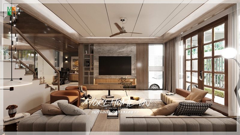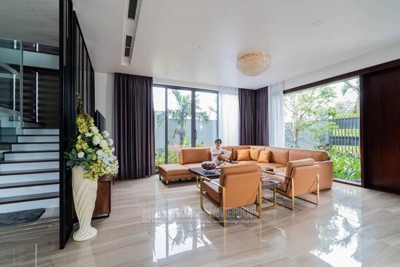 Thiết kế nội thất phòng khách đẹp với đồ nội thất hiện đại cho biệt thự