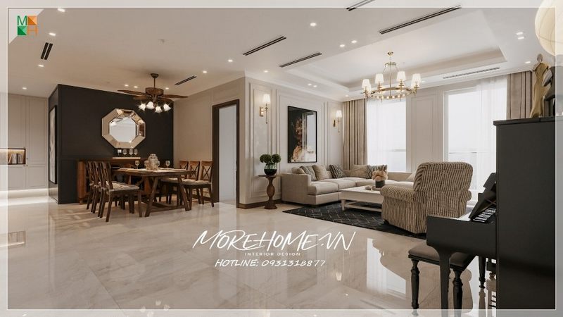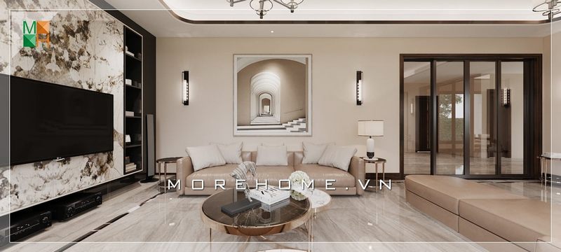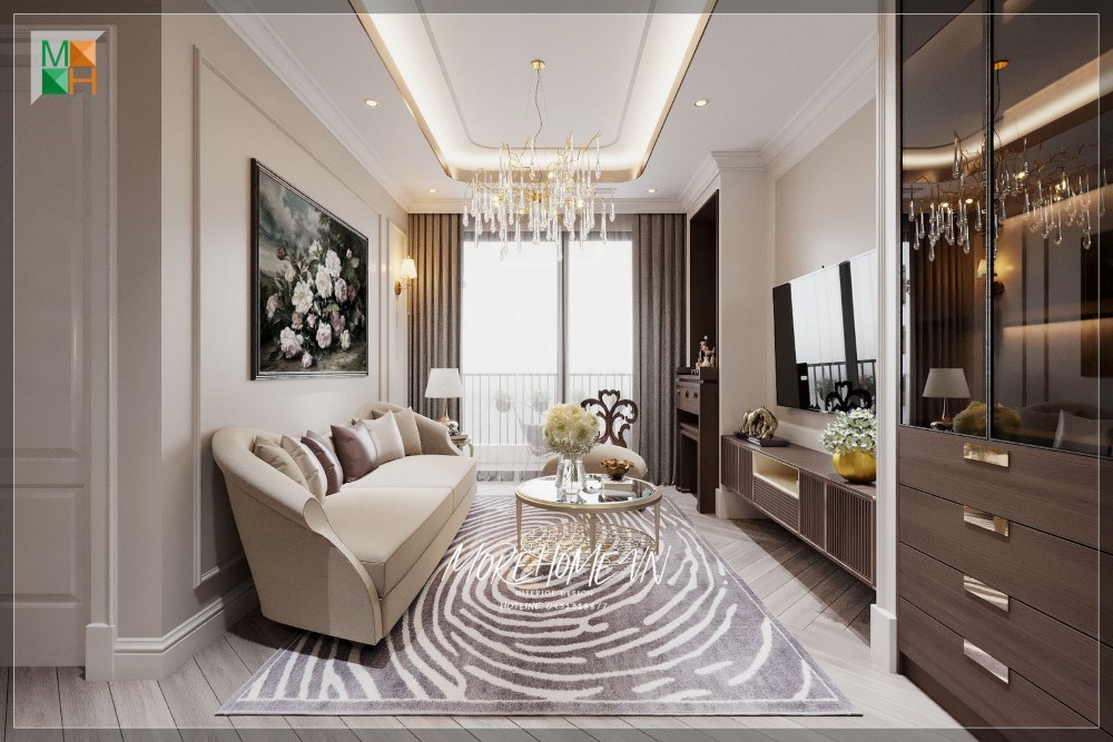 Ngỡ ngành trước mẫu thiết kế phòng khách chung cư đẹp sang trọng được thiết kế bởi Morehome.