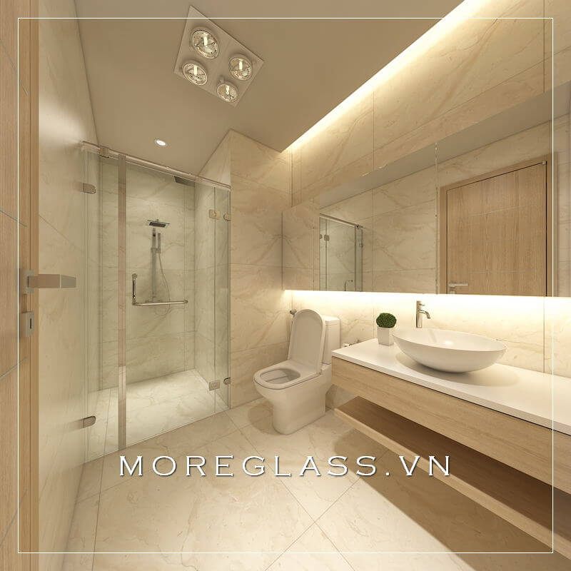 Mẫu thiết kế của nhà tắm và nhà vệ sinh sử dụng kính cường lực để tạo nên vẻ đẹp tinh tế và sang trọng.